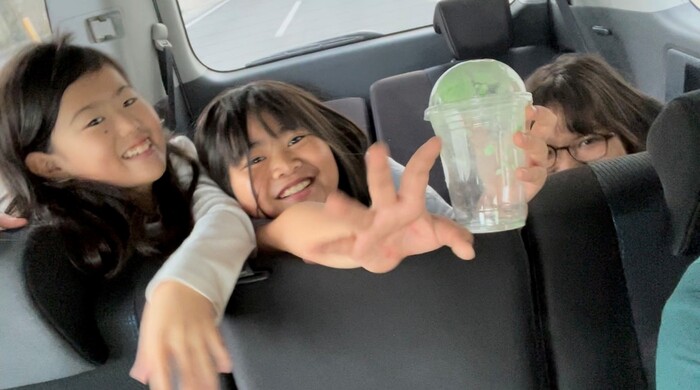 帰りの車の中でも、ワイワイ楽しそうに笑顔でした。