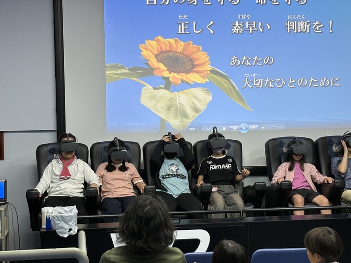 まずは火災体験。VRを使って、実際に火事の現場にいるような疑似体験ができます。