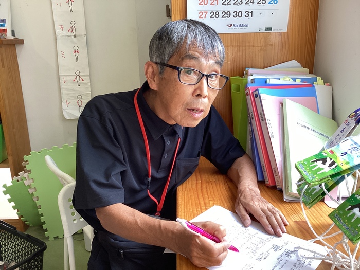 おもちゃや道具を手作りしてくださっている小谷先生。