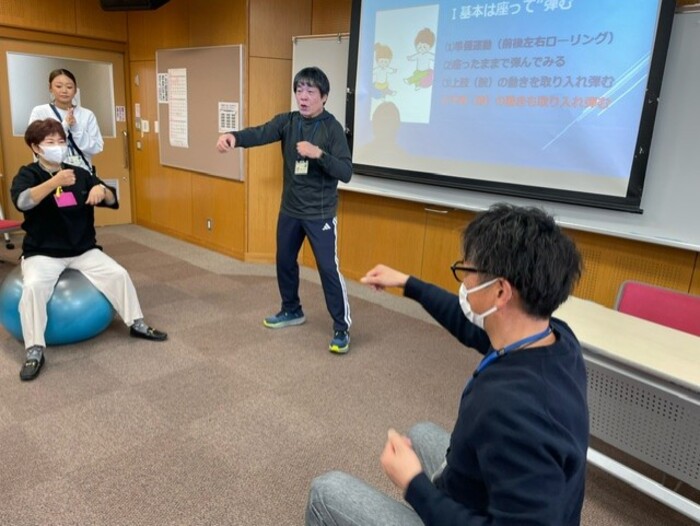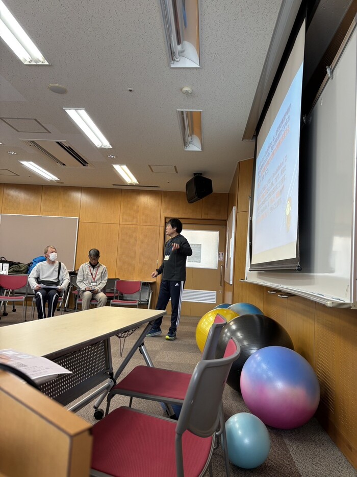 講話内容は、バランスボールの歴史に始まり、ボールの形態を確認した後